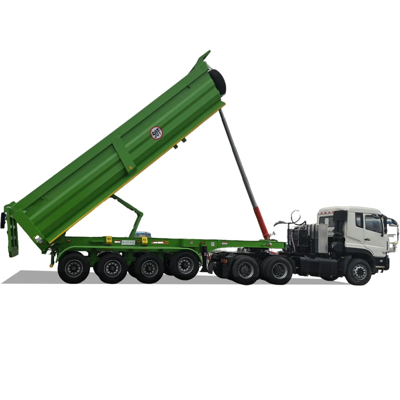A rear dump semi-trailer is a specialised transport vehicle widely employed for the hauling and discharge of bulk materials such as gravel, coal, sand, and construction aggregates. Its defining characteristic is the rear dumping mechanism, which enables materials to be unloaded efficiently from the rear end of the trailer. This semi-trailer is engineered to facilitate rapid and controlled unloading, significantly enhancing operational efficiency while reducing labour intensity and turnaround time. By allowing the cargo body to be hydraulically lifted and tilted, materials can be discharged directly onto the ground or into designated unloading areas, making the process both swift and reliable. Structurally, a rear dump semi-trailer typically consists of a tractor unit and a detachable trailer body. The trailer is connected to the tractor via a standard coupling system and is equipped with a robust lifting mechanism, most commonly powered by a hydraulic system. This system provides precise control over the tipping angle and unloading speed, thereby improving safety and operational accuracy, particularly in demanding working conditions. The principal advantages of rear dump semi-trailers include high payload capacity, superior unloading efficiency, and strong adaptability to diverse road and terrain conditions. Owing to their durability and versatility, these trailers are extensively utilised in the construction, mining, and earth-moving industries, where they play a critical role in ensuring the efficient transportation and discharge of bulk materials.