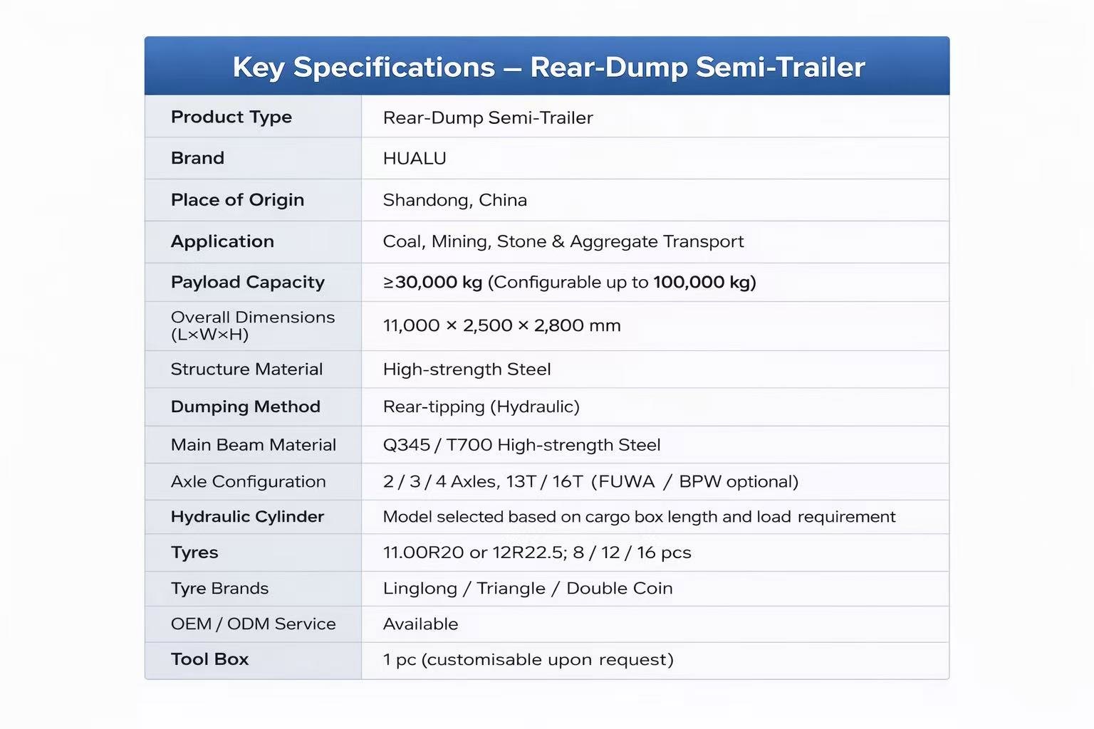 Heavy-Duty Rear Dump Semi-Trailer (30–100 Tons) | 3-Axle Mining & Construction for africa