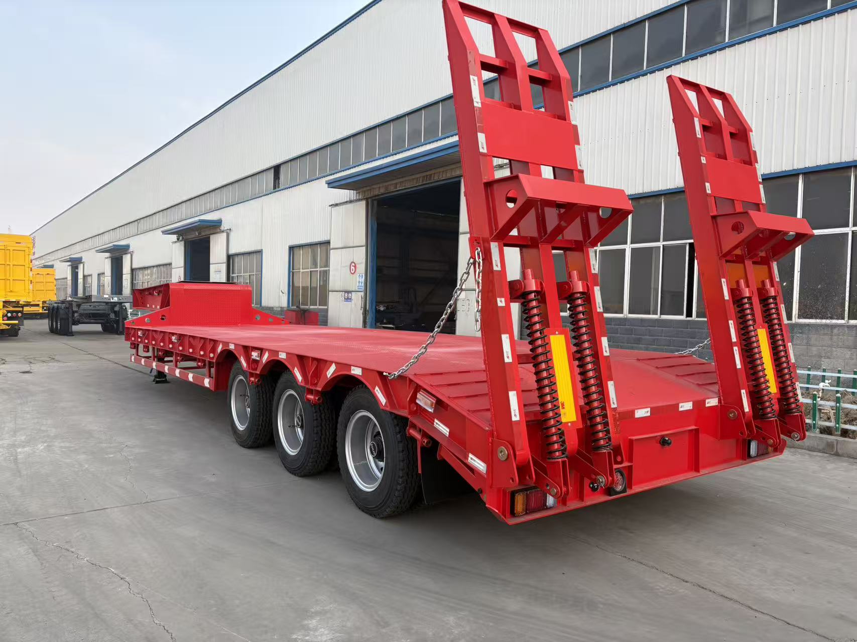Key Feature: It features a deck positioned extremely close to the ground , achieved by placing the wheels in a "well" or using multiple axles. This low profile allows tall machinery to pass under bridges and through tunnels safely.