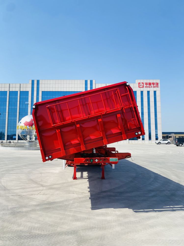 Explosion-Proof Design: Recognizing the need for safe transportation of hazardous materials, the Hualu Explosion Side Tipper Trailer is equipped with an explosion-proof body. This innovative design ensures that even under extreme conditions, the trailer maintains its structural integrity, protecting both cargo and the environment.