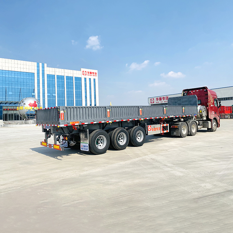 - Efficient Mobility: Equipped with durable axles and tires, the Hualu Standard Flatbed Trailer ensures smooth and stable rides, even on rough roads. Its optimized weight distribution ensures improved fuel efficiency and reduced wear on towing vehicles.