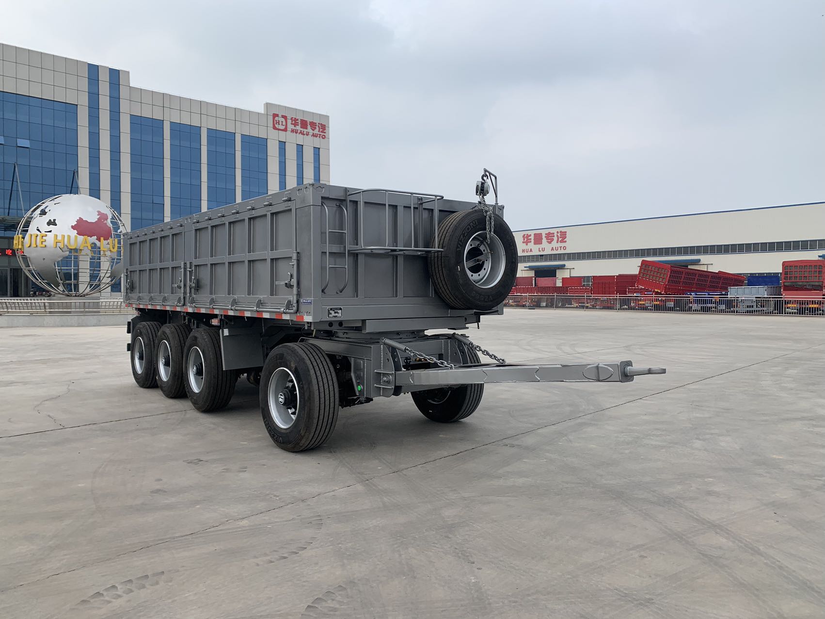 In conclusion, the Hualu 3-Axle Red Side Tipper Full Trailer is a powerful and reliable addition to any transportation fleet. Its high-strength construction, efficient side tipping mechanism, and advanced suspension and braking systems make it the perfect choice for transporting bulk materials safely and efficiently. Contact us today to learn more about our customization options and how we can help you optimize your transportation operations.